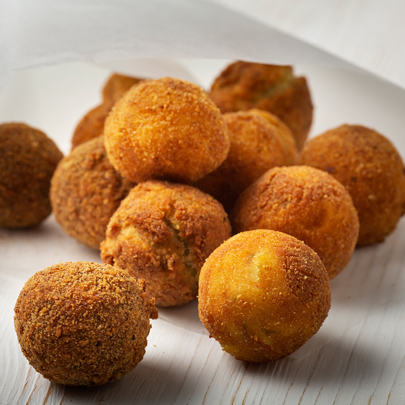 Mozzarelline panate Qualitaly: bocconcini di mozzarella filante in una croccante panatura. Pronte in forno in pochi minuti, perfette per buffet, aperitivi e come secondo piatto. Formato 3kg